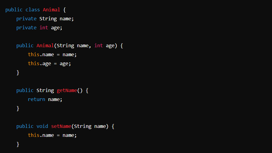 먼저 모든 동물의 공통 특성을 나타내는 `Animal` 클래스를 정의합니다.